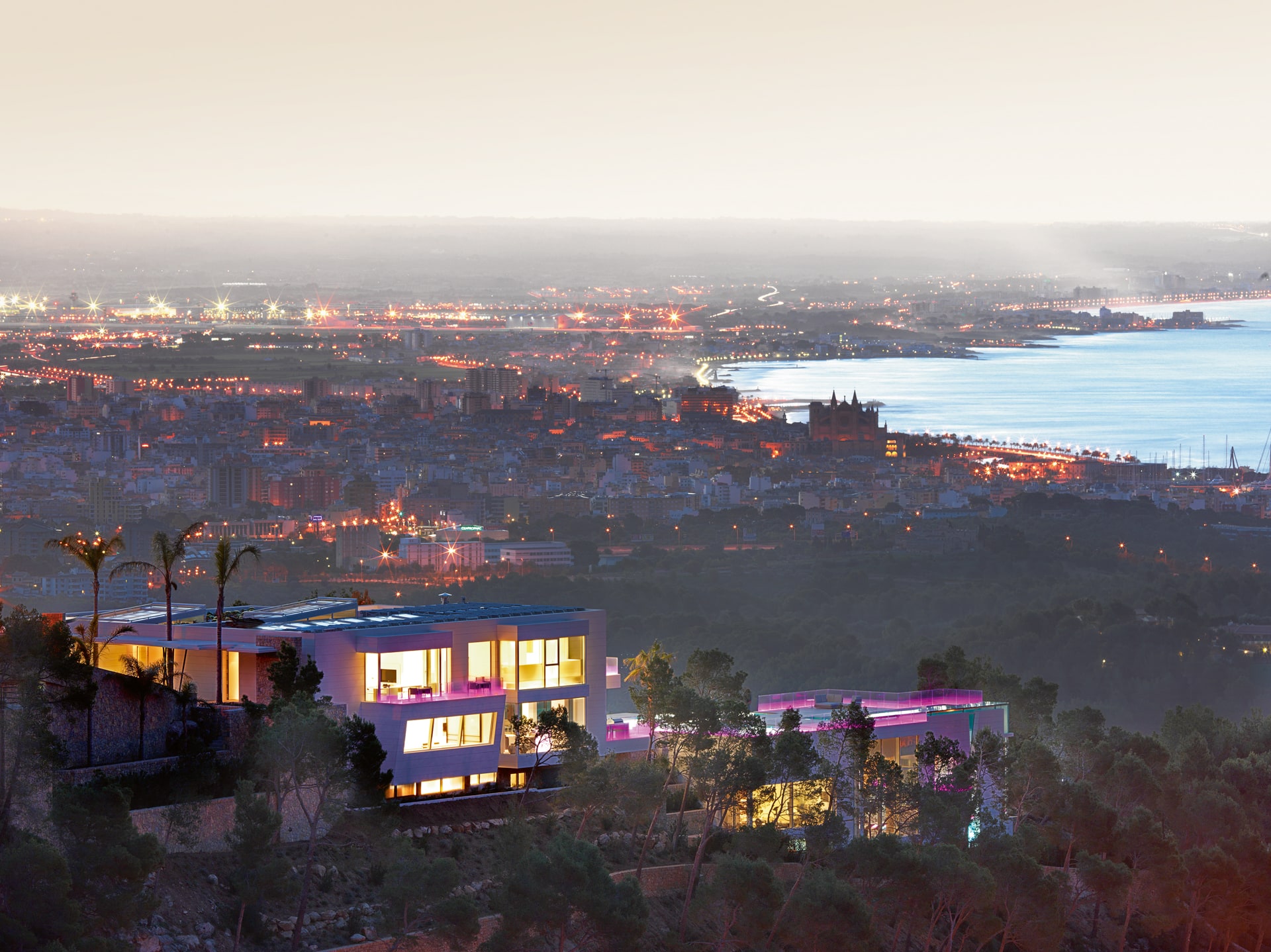 Villa Chameleon, an exceptional luxury estate in the lofty heights of the exclusive Son Vida neighbourhood with breathtaking views. The main building hosts among other spaces the living room, the bedroom suites, the kitchen and an impressive wine cellar. The second building features the pool, wellness and fitness area and a large guest house forms the third building. The residence is a 21st century representation of timeless architecture blending seamlessly with the natural surroundings.